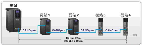 以往的變頻器是扮演純粹驅(qū)動的角色,接收上位機的命令做各種機械運動,C2000內(nèi)建的PLC功能,同時支援CANopen通訊機能,當(dāng)客戶有做兩臺以上變頻器的應(yīng)用時,只需要透過一臺C2000做主站,就可以實現(xiàn)最多同時/控制8臺C2000或ASDA-A2伺服的應(yīng)用,還可以利用分散式I/O的方式來控制遠(yuǎn)程I/O節(jié)點,增加主機 I/O。