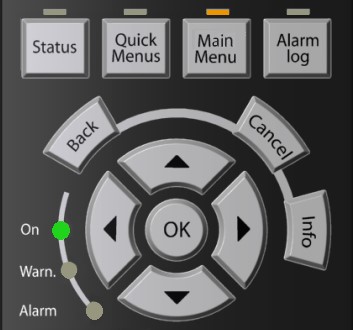 丹佛斯變頻器參數通過操作面板進行設置。其中,方向鍵代表設置對象的切換選擇,上下兩鍵對設置值進行設定,OK鍵代表確認選擇,Back代表返回上一級菜單,Cancel代表取消當前設置選擇,Info鍵代表查看幫助信息。