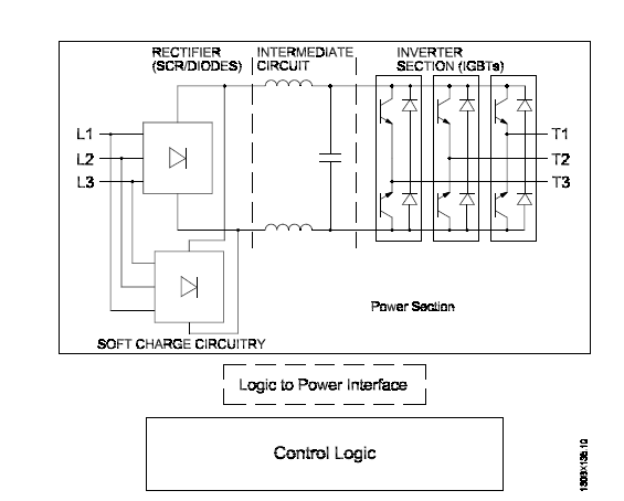 電壓在經(jīng)過整流器部分后,便會到達(dá)中間部分。整流電壓通過由直流總線感應(yīng)器和直流總線電容器組組成的正弦波濾波器電路進(jìn)行平抑。