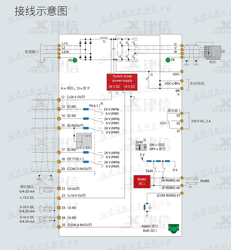 即代表三相380V空冷式變頻器0.37KW,防護等級IP20,C4級別EMC,無制動斬波器。