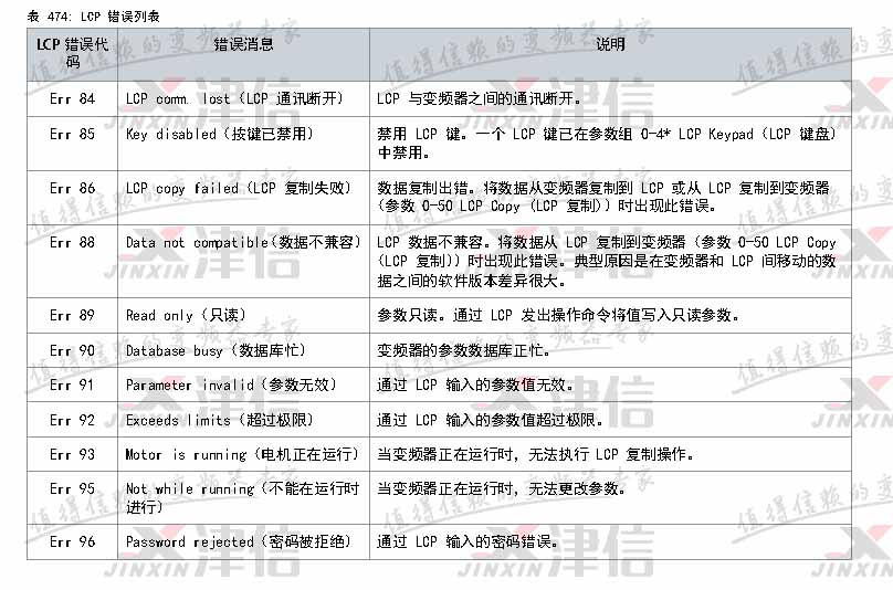 Err 84,Err 85,Err 86,Err 88,Err 89,Err 90,Err 91,Err 92,Err 93,Err 95,Err 96,錯誤代碼詳細信息如下: