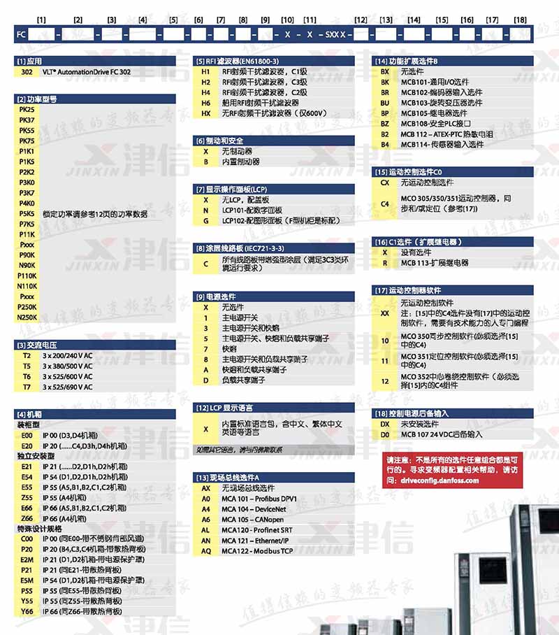 可以根據不同的功率和選件來選型,如:FC302P3K0T5E20H1BXXXXXSXXXXAXBXCXXXXDX,
