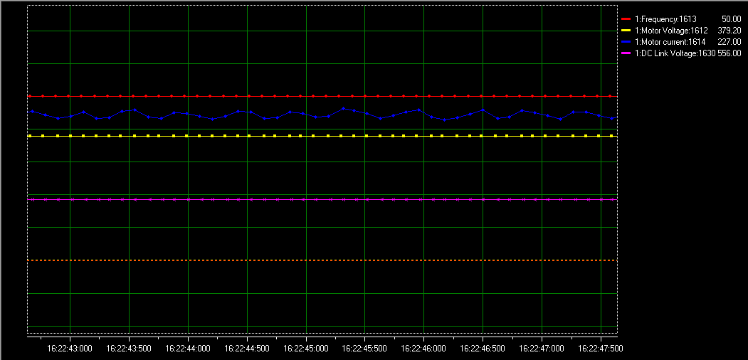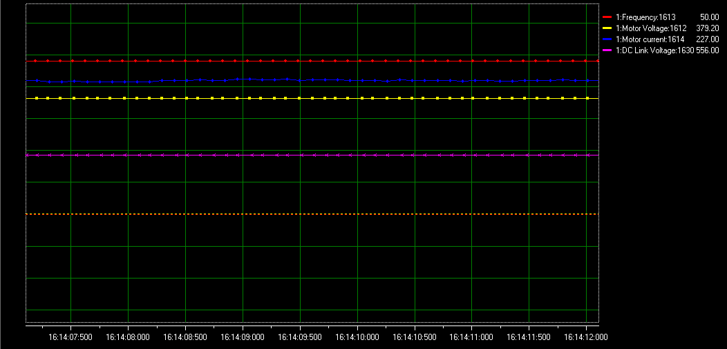 對以上參數進行調整后,客戶描述的現象(電機的震動和噪音)明顯得到解決,以下為變頻器經過調整過后的電機波形和音頻文件