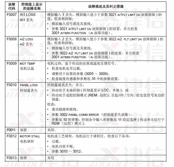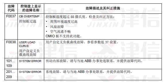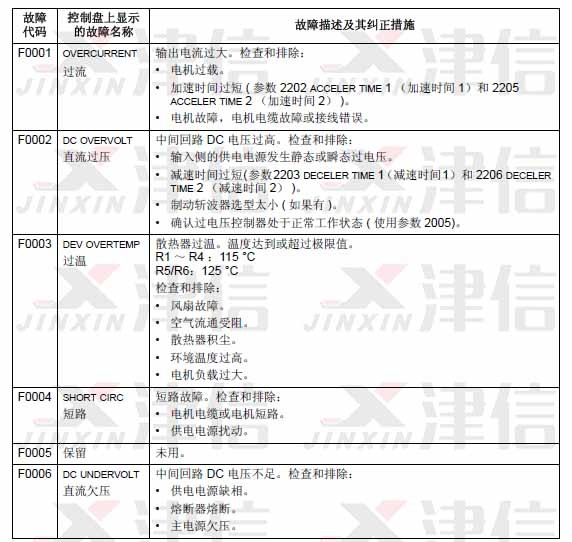 可以通過MENU/ENTER鍵來清除故障信息。如果故障依然存在,故障信息會在幾秒鐘后再次出現(xiàn)。此時需要根據(jù)故障代碼來進行相應的檢查和采取應對措施。
