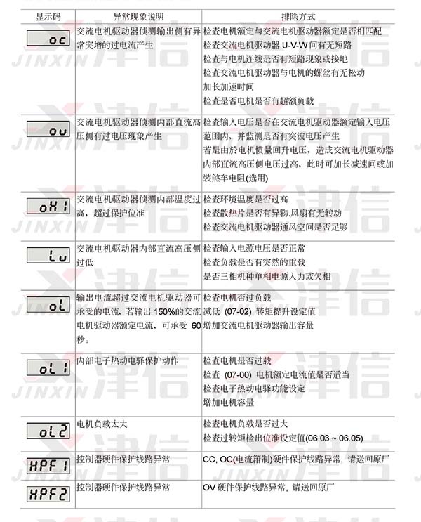 一、OC過電流,OU過電壓,OL故障代碼