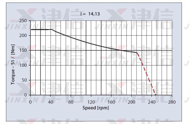 參考OGD電機選型樣本,OGDSK214K13電機的轉速-轉矩特性如下: