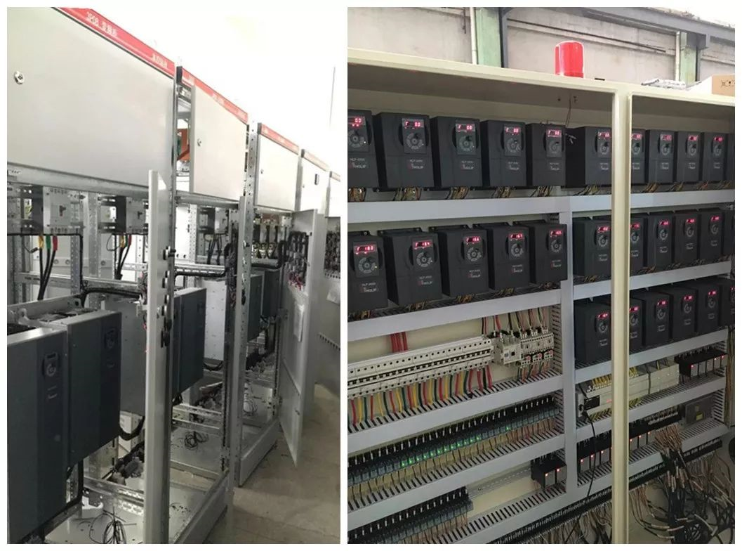 外加空壓機、羅茨風機等。整線配備電機200余套,裝機容量超過1600 kW,可見變頻器在節能上大有作為。