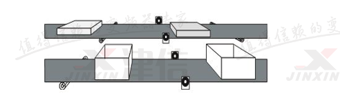 如上圖所示,即使兩條輸送帶同步運行,蓋子仍舊無法在正確的時間與盒子對齊,使用SYNCM指令時,可通過外部標(biāo)記對主機與從機之間的位置偏差進(jìn)行檢測,并對可能出現(xiàn)的位置偏差進(jìn)行修正。